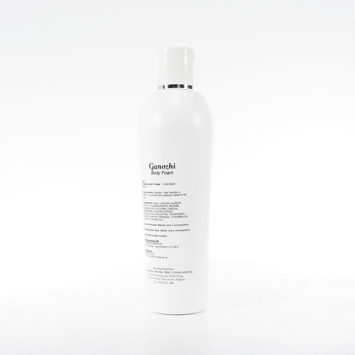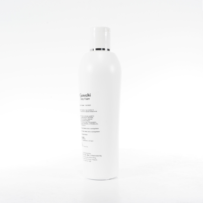 Ganozhi Body Foam comes in a pump bottle, allowing for convenient and mess-free dispensing. Simply apply a suitable amount of foam to wet skin, lather, and rinse thoroughly.